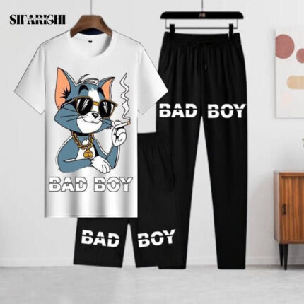 • Includes: Printed T-Shirt + Shorts + Trousers